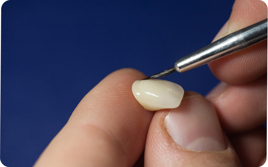Une fois la préparation réalisée, une empreinte précise est effectuée. Elle permet au laboratoire de créer des facettes parfaitement adaptées à la forme des dents et au projet esthétique validé. La fabrication se déroule dans un environnement technique rigoureux. Chaque facette est conçue pour s’intégrer avec précision dans le sourire et accompagner la dynamique du visage.